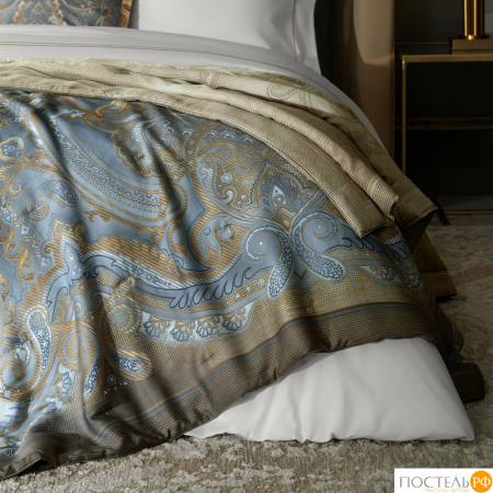 Дизайн этой двусторонней модели переносит нас в загадочную Персию с ее прекрасными дворцами, изысканными тканями с тонким шитьем и золотыми украшениями. Ткань оформлена витиеватым восточным узором пейсли. Принт напоминает жаккардовый орнамент, вытканный вручную на сияющем шелке. Художники-дизайнеры Togas с помощью рисунка искусно воссоздали нежные переливы шелковой ткани и золотые нити отделки, которые кажутся рельефными, будто ощутимыми при прикосновении к ним. «Эсфира» наполнит спальню красотой драгоценных шелковых тканей из дворцов персидских шахов.