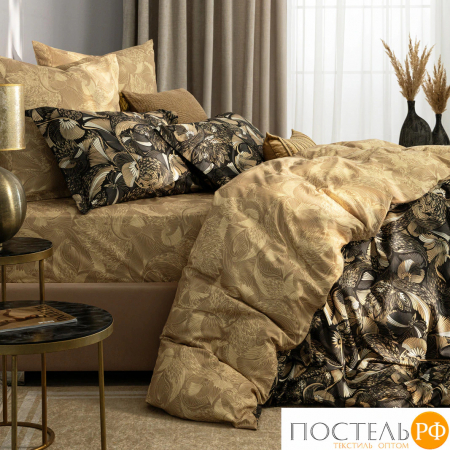 Двусторонний дизайн позволяет легко обновлять облик вашей спальни, а застёжка пододеяльника на молнии обеспечивает удобство в использовании. Выполненное в элегантной палитре черного и золотистого цветов, постельное белье создает атмосферу роскоши и уюта. Изысканные узоры, напоминающие плавные линии и природные мотивы, придают комплекту современный стиль. Такой текстиль станет ярким акцентом в интерьере, добавляя нотку изысканности.