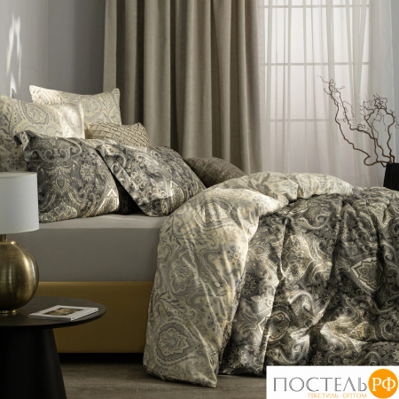 Двусторонний дизайн позволяет легко обновлять облик вашей спальни, а застёжка пододеяльника на молнии обеспечивает удобство в использовании. Постельное белье оформлено в элегантной палитре серых и бежевых оттенков, создавая атмосферу изысканности и утонченности. Восточный принт с узорами в стиле пейсли добавляет глубину и шарм, придавая комплекту классический вид. Это сочетание цвета и дизайна станет стильным акцентом в интерьере, наполняя спальню атмосферой комфорта и изысканности.
