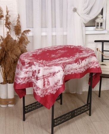 Скатерть прямоугольная жаккардовая с вытачным углом "Русская зима"-бордо