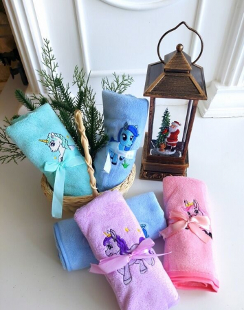 Полотенце "Цветные единорги" Символ года 2026!!! - красивое, быстросохнущее полотенце из невероятно мягкой ткани - микрофибры.