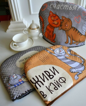 Грелка на чайник "Кошачьи тайны" рогожка хлопок 100% (арт. 1379520252)