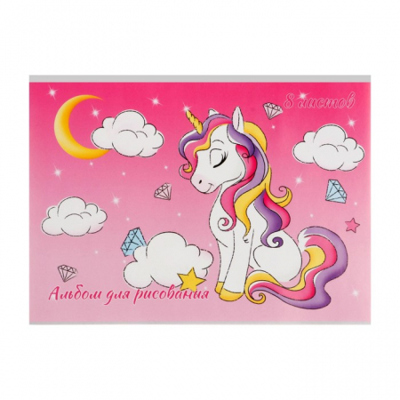 Альбом для рисования Calligrata «Милый единорог» А4, 8 листов на скрепке, обложка мелованная бумага 120 г/м?, внутренний блок офсет 100 г/м? (арт. 9422599)
