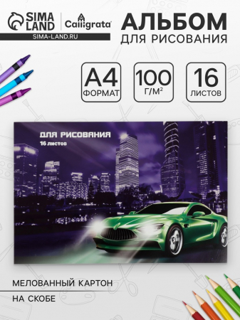 Альбом для рисования Calligrata «Авто» А4, 16 листов на скрепке, обложка мелованный картон, блок 100 г/м? (арт. 3297968)