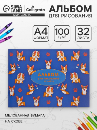 Альбом для рисования Calligrata «Корги» А4, 32 листа на скрепке, обложка мелованная бумага 120 г/м?, внутренний блок офсет 100 г/м? (арт. 9421378)