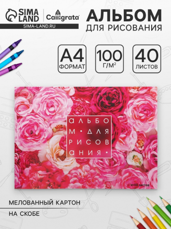 Альбом для рисования Calligrata «Розы» А4, 40 листов на скрепке, обложка мелованный картон, блок 100 г/м? (арт. 3298000)
