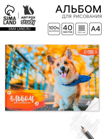 Альбом для рисования 40 листов А4 на скрепке «Корги» обложка 160 г/м?, бумага 100 г/м?. (арт. 9403307)