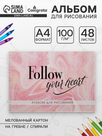 Альбом для рисования Calligrata «Розовый мрамор» А4, 48 листов на гребне, обложка мелованный картон, блок 100 г/м? (арт. 5666553)
