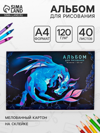 Альбом для рисования А4, 40 листов на клею «Милый дракон», глиттер, плотность листов120 г/м? (арт. 10885458)