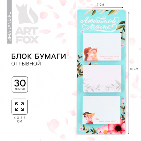 Блок для записей с отрывными листами «Любимой маме», 3 шт./30 л (арт. 10048498)