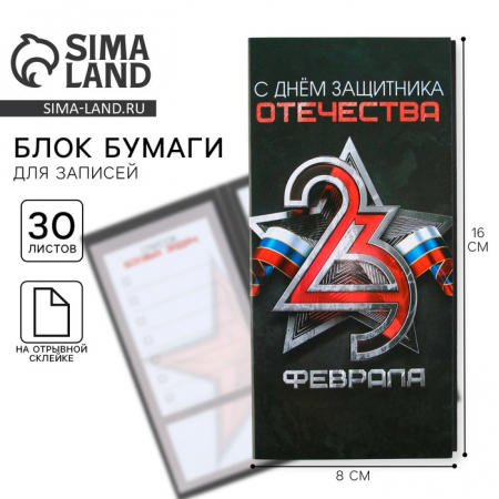 Блок для записей с отрывными листами, в открытке, 30 листов «С днем защитника отечества. 23 февраля» (арт. 9212671)