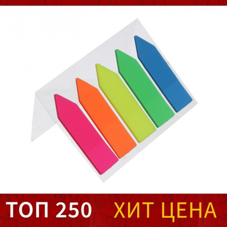 Блок - закладка с липким краем, «Стрелки», 12?45 мм, пластик, 5 цветов по 20 листов, флуоресцентный (арт. 5491857)