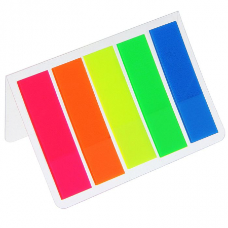 Блок - закладка с липким краем,12?45 мм, пластик, 5 цветов по 25 листов, флуоресцентный, в блистере (арт. 1299403)