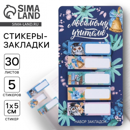 Стикеры для заметок, с липким краем, 30 л., 5 шт. «Любимому учителю» (арт. 9447597)
