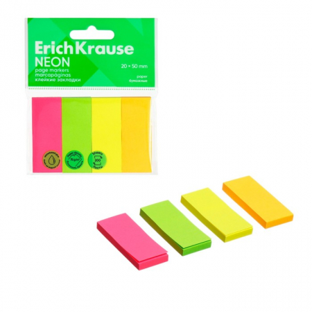 Закладки с клеевым краем бумажные 20x50 мм, ErichKrause "Neon", 200 листов, 4 цвета (арт. 10429726)
