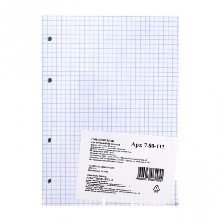 Сменный блок для тетрадей на кольцах А5, 80 листов в клетку, белый, 60 г/м? (арт. 678766)