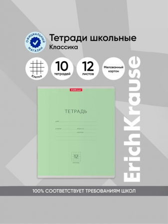 Тетрадь 12 листов в клетку, ErichKrause «Классика», зелёная (арт. 1365472)