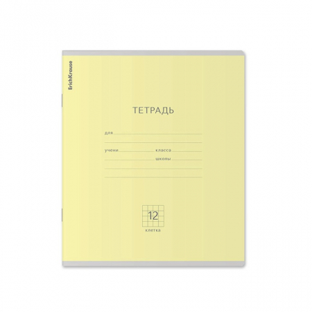 Тетрадь 12 листов в клетку ErichKrause «Классика», обложка мелованный картон, жёлтая (арт. 2977067)