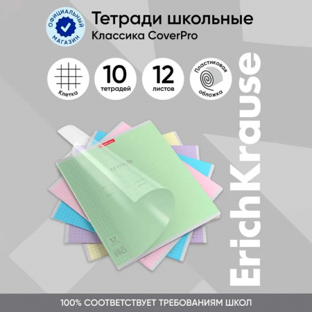 Тетрадь 12 листов, ErichKrause «Классика CoverPrо», в клетку, пластиковая обложка, блок офсет, 100% белизна, МИКС (арт. 9834213)