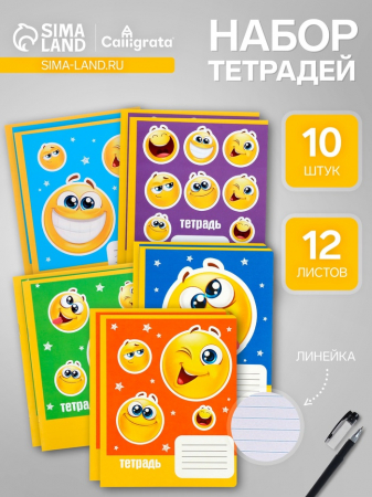 Набор тетрадей, 12 листов в линейку, Calligrata «Смайлики», 10 штук (арт. 7670558)