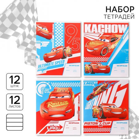 Тетрадь в линейку 12 листов, обложка бумага мелованная, в наборе 12 штук «Тачки» (арт. 9069349)