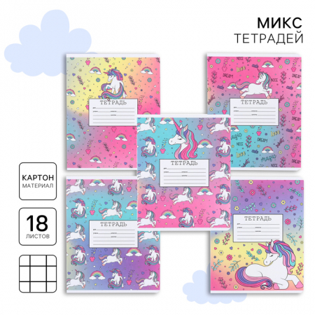 Тетрадь в клетку 18 листов, 5 видов МИКС, обложка мелованный картон, «Минни Маус и единорог» (арт. 9448880)