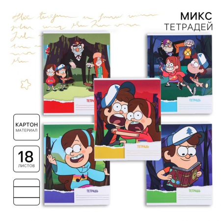 Тетрадь в линейку 18 листов, 5 видов МИКС, обложка мелованный картон, «Гравити Фолз» (арт. 9448875)