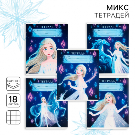 Тетрадь в клетку 18 листов, 5 видов МИКС, обложка мелованный картон, «Холодное сердце» (арт. 10205259)