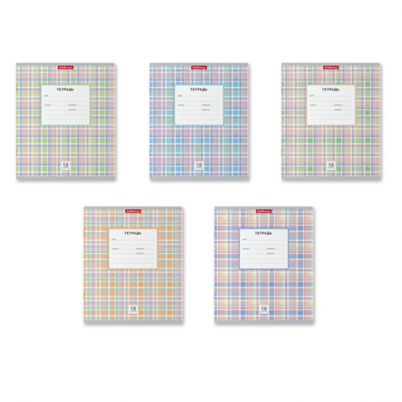 Тетрадь 18 листов в клетку ErichKrause Optima "Новая шотландка", обложка мелованный картон, блок офсет, белизна 100%, МИКС (арт. 9406244)
