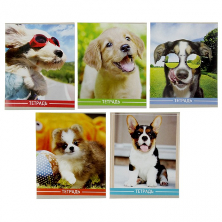 Тетрадь 36 листов в клетку, Calligrata «Щенки», МИКС (арт. 3001743)