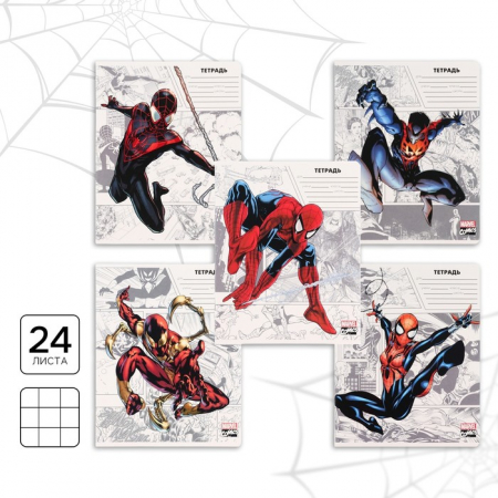 Тетрадь в клетку 24 листа, 5 видов МИКС, обложка мелованный картон, «Мстители» (арт. 10205268)