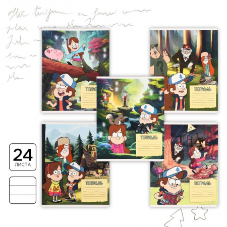 Тетрадь в линейку 24 листа, 5 видов МИКС, обложка мелованный картон, «Гравити Фолз» (арт. 10205265)