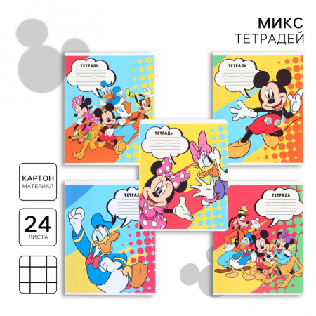 Тетрадь в клетку 24 листа, 5 видов МИКС, обложка мелованная бумага, «Минни Маус» (арт. 9471164)