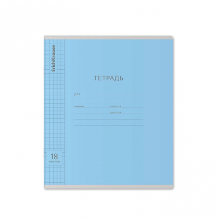 Тетрадь 18 листов в клетку ErichKrause «Классика», обложка мелованный картон, голубая (арт. 4296053)