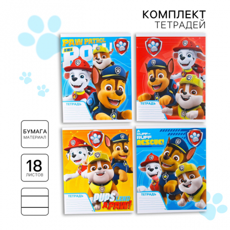 Тетрадь 18 листов, 20 шт. в линейку, обложка бумага мелованная, Щенячий патруль (арт. 9606127)