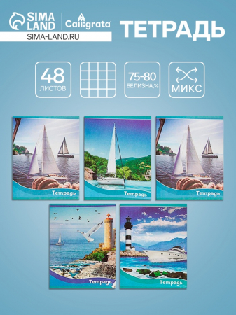 Тетрадь 48 листов в клетку, Calligrata «Корабли», МИКС (арт. 3043763)