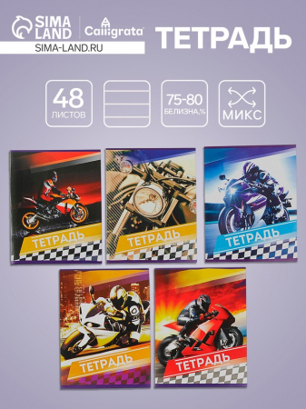 Тетрадь 48 листов в линейку Calligrata «Мотоциклы», серые листы, МИКС (арт. 3043761)