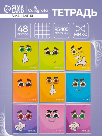 Тетрадь 48 листов в клетку, Calligrata «Смайлики-2», МИКС (арт. 3874638)