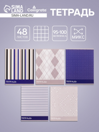 Тетрадь 48 листов в клетку, Calligrata «Стильные узоры», МИКС (арт. 3043778)