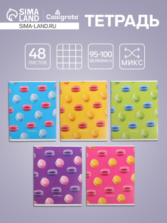 Тетрадь 48 листов в клетку, Calligrata «Макарун», МИКС (арт. 6250515)