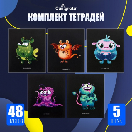 Комплект тетрадей из 5 штук, 48 листов в клетку Calligrata "Инопланетные друзья", обложка мелованный картон, блок офсет (арт. 7644122)