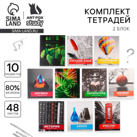 Тетради предметные, 48 л., набор из 10 шт. «Школьные предметы» (арт. 10733458)