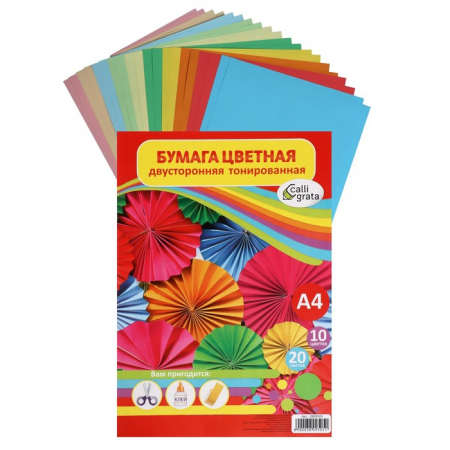 Бумага цветная двусторонняя А4, 20 листов, 10 цветов, тонированная (арт. 3809505)