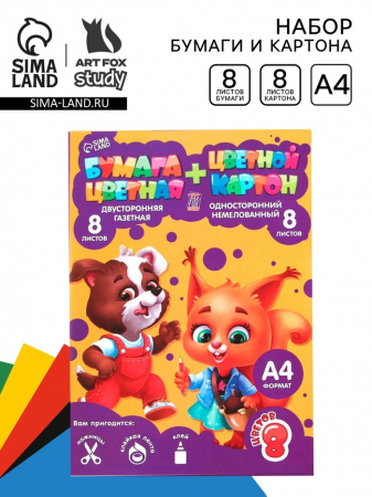Набор, цветной картон 8 л.,8 цв., цветная бумага 8 л., 8 цв., «Для отличной учёбы» (арт. 9457888)