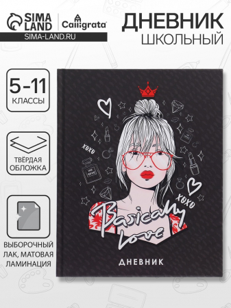 Дневник школьный для 5-11 классов, «Девушка в очках», твёрдая обложка 7БЦ, матовая ламинация, выборочный лак, 48 листов (арт. 9422448)