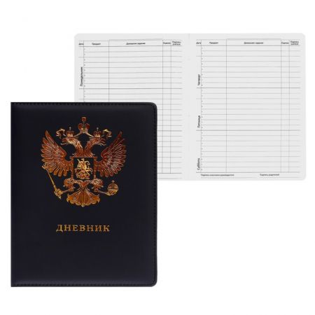 Дневник школьный для 1-11 классов «Герб», твёрдая обложка, искусственная кожа, тиснение фольгой, ляссе, тонированный блок, 48 листов (арт. 4731179)