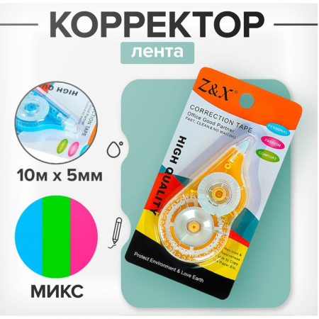 Корректор-лента 10 м ? 5 мм, блистер, европодвес, корпус МИКС (арт. 4518662)
