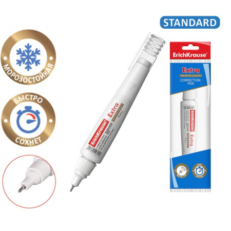 Корректор-ручка 8 мл, ErichKrause Extra, экономичный расход, металлический наконечник (арт. 6485072)