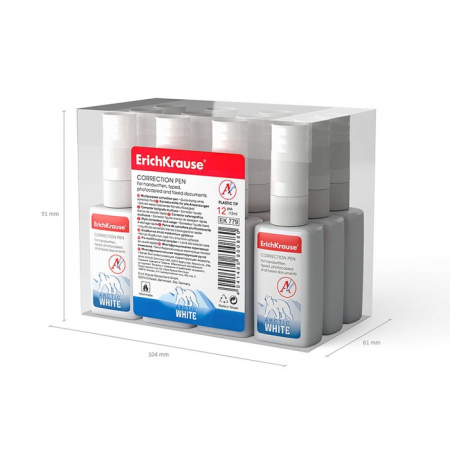 Корректирующая жидкость 12 мл, ErichKrause Arctic White, супер-белая, плавное нанесение, с пластиковым наконечником (арт. 789529)