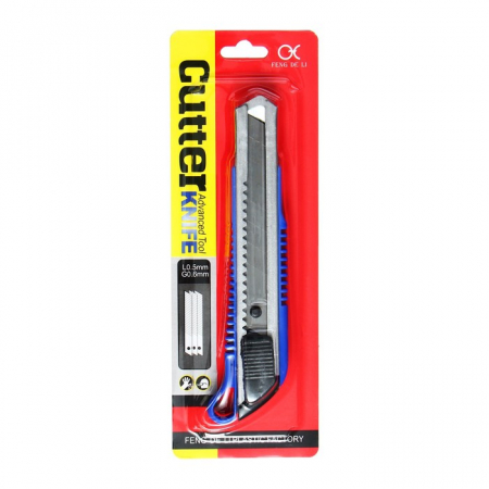 Нож канцелярский с лезвием 18 мм, с металлическими направляющими, с фиксатором, МИКС (арт. 550226)